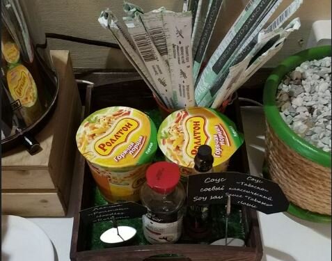 Занятной историей поделился с читателями сайта «Пикабу» турист, побывавший в Астрахани. Молодой человек заселился в четырёхзвёздочный отель нашего города и был несколько удивлён разнообразием меню — помимо традиционных яичниц и колбасок, отель предлагает гостям отведать дешёвую лапшу быстрого приготовления в стаканчике. К блюду даже прилагаются китайские палочки. Между тем, стоимость самого дешёвого номера в этом отеле составляет почти три тысячи рублей. Как выяснилось, астраханские отельеры Америку не открыли — в комментариях к посту читатели отметили, что встречали подобную картину в гостиницах других городов неоднократно.