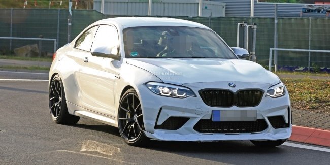 BMW тестирует M2 CS или M2 CSL Фотошпионы застали на "Нордшляйфе" очередную новинку BMW. Судя по всему, марка обкатывает "заряженную" версию купе M2 - вероятно, называться она будет CS или CSL. Обширная галерея шпионских фотографий подтверждает, что BMW готовит ещё более спортивную версию своего купе M2, которая будет над исполнением Competition. По слухам, новую модификацию назовут или CS, или CSL. В целом машина выглядит как M2 Competition, но тестовая бригада инженеров BMW сравнивает новинку с Porsche, а также у купе частично замаскирован кузовной обвес, скрывающий новые аэродинамические элементы. Из других отличий - новые увеличенные тормозные диски с суппортами золотистого цвета, которые можно заметить сквозь чёрные колёса с Y-образными спицами и покрышками Pilot Sport Cup 2. Ранее появились слухи, что в 2020 году исключительно для рынка США ограниченным тиражом выпустят BMW M2 CS, которая будет на 60 килограммов легче и мощнее базового 405-сильного варианта. Ну а в 2021 году дол