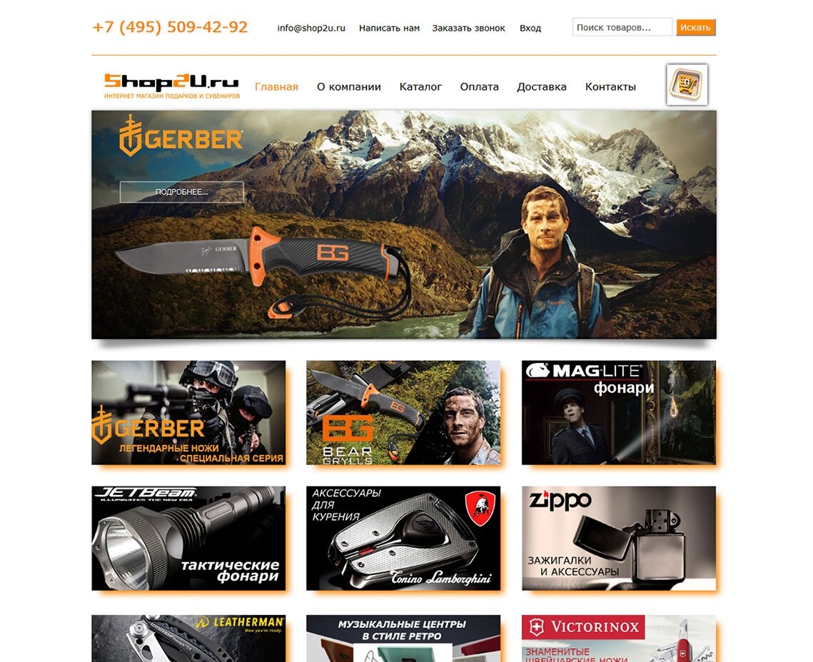 Интернет магазин подарков и сувениров с прекрасно построенной визуализацией, позволяющий понять, что предлагается клиенту без прочтения текстовой информации. В этом случае создание сайтов выстроено по стратегическому направлению, ориентированному на зрительное восприятие. Применение грамотного маркетингового приема позволило сделать ресурс удобным для понимания, даже в ситуациях, когда посетитель не имеет конкретной цели, а практичная навигация и интуитивный интерфейс лишь гармонично дополняют выстроенную концепцию. Вполне стандартная система позволяет с легкостью выбирать товары и быстро оформлять покупку.