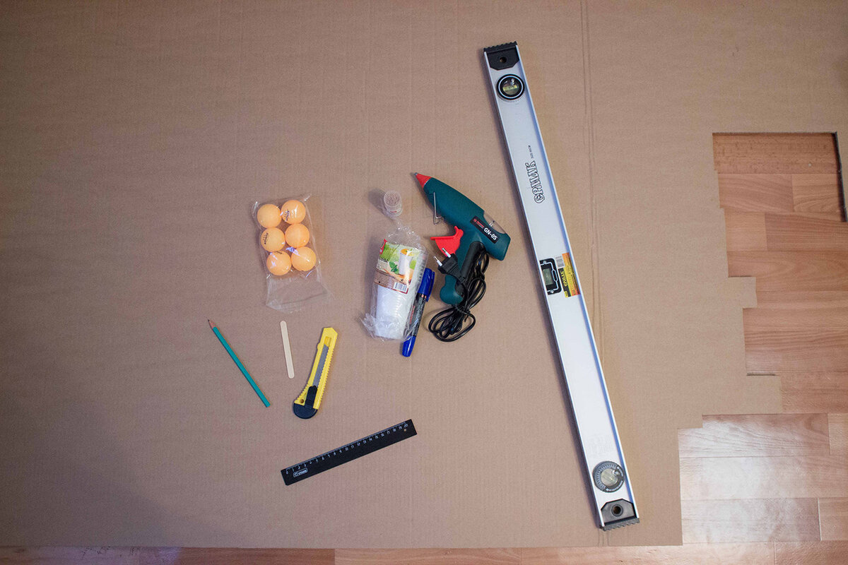 В начале весны в одном из магазинчиков "Фикс Прайс", я приобрел настольный баскетбол. Сама игрушка была небольших размеров, с единственным маленьким кольцом и тремя шариками. Хоть мы с женой и залипли на пару минут, сын же оставил покупку без должного внимания. И вот в тот же самый вечер, когда закончил клеить сортировщик для монет, возникла новая идея, а почему бы не сделать настольный баскетбол из остатков картона? Тем более, что на Youtube можно найти разные видеоролики на эту тему. Сказано сделано. Хотя... это только на словах все быстро и легко. Мне же, пришлось провозиться с 10-и вечера до 3 ночи. Причем в 7 я уже должен был собираться на работу. Спешить пришлось лишь по той причине, что следующим утром из деревни должны были вернуться мои. Для создания настольной игрушки, мне понадобились: Сперва делаем основание из листа картона размерами: 30 на 60 см. На рисунке, как указано выше необходимо сделать дорожки для скатывания шариков. Высота стенок - 5 см. Боковые стены размерами 3