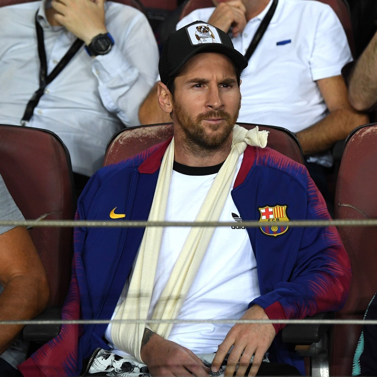 Из-за травмы, которая была получена в матче против Севилии Месси не сыграл в матче против Интер. И наблюдал за матчем на трибуне!