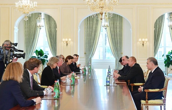 В азербайджанской столице 24 октября 2018 года прошла встреча между Ильхамом Алиевым и советником президента Соединенных Штатов Америки по вопросам национальной безопасности Джоном Болтоном. Об этом онлайн-радио «Голос СНГ» сообщили в пресс-службе президента Азербайджана. Политики обсудил обширный спектр различных тем, главное место среди которых заняли вопросы международной безопасности. Обращая внимание на динамично развивающееся между Баку и Вашингтоном сотрудничество в данной сфере, Ильхам Алиев напомнил о деятельном участии Азербайджана в проведении миротворческих операций в Афганистане в составе объединенных международных сил. Кроме того, в ходе дискуссии, была затронута и тема экономического партнерства. Касаясь данного аспекта отношений, президент с удовольствием отметил широкую вовлеченность американских компаний в реализацию различных проектов на азербайджанской территории, а также поблагодарил США за оказанную Баку поддержку при создании «Южного газового коридора».