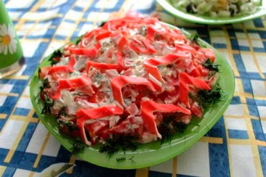 Многим из нас зимой так не хватает летнего солнышка, горячего песка и ласкового Красного моря. Волны которого неторопливо набегают на берег. Вновь окунуться в летние воспоминания запросто можно даже на Новый год просто приготовив салат, который так и называется «Красное море». Рецепт его приготовления легче, чем даже у салата Цезарь, а ингредиенты можно достать в ближайшем продуктовом магазине. Немаловажным плюсом такого салата является простота его изготовления, так как ни один из его компонентов не требует серьёзной термической обработки или длительной подготовки. Ингредиенты: 3 больших сочных томата, пачка охлаждённых крабовых палочек, 150 грамм твёрдого сыра два кубика плавленого сырка, красный болгарский перец. Для того, чтобы подчеркнуть вкус нам понадобятся любимые приправы (традиционный молотый чёрный перец в сочетании с имбирём тоже вполне подойдёт), майонез для заправки, небольшая головка чеснока. Приготовление: Прежде всего, следует позаботиться о чистоте продуктов.
