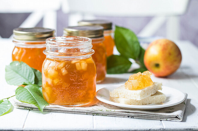 Желе из яблок – вкус знакомый с детства. А если добавить кусочки груши, то получится сладкое желе с необычным и ярким вкусом. Ингредиенты Способ приготовления шаг 1. Яблоки помыть, разрезать и выжать 800 мл сока. Груши помыть, очистить, нарезать кубиками. На кухонных весах отмерить необходимое по рецепту количество фруктов. Добавить Ванильный сахар. шаг 2. Смешать 1 упаковку «Желфикс 2:1» Dr.Oetker с сахаром шаг 3. Смешать в кастрюле яблочный сок, кусочки груши, Желфикс и сахар, поставить на средний огонь. Постоянно помешивая, довести до кипения. Совет: Пользуйтесь деревянной лопаткой. Не допускайте пригорания. Варить 3 минуты на медленном огне и снять с огня. шаг 4. Разложить желе в подготовленные сухие баночки. Совет: За несколько часов до консервирования банки рекомендуется помыть, стерилизовать и просушить. шаг 5. Закрыть баночки крышками, перевернуть вверх дном и оставить их на 5 минут. Совет: Чтобы кусочки груши распределились равномерно, периодически поворачивайте б