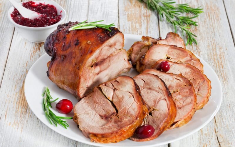 КБЖУ: 132ккал, Б-13.4, Ж-8.2, У-1.1 Что понадобится : Бедро индейки без кости - 800г Перец болгарский -100г Чеснок - 3-4 зубчика Сметана - 2 ст. л Горчица - 1/3 ч. л Что делаем: На внутренней части бедра индейки делаем надрезы, как гармошка. Посыпаем любимыми специями, я люблю сухой чеснок, копченую паприку и специальную приправу для крицы/индейки. Нарезаем соломкой болгарский перец и чеснок, (морковь). Закладываем в надрезы. Смешиваем сметану или густой йогурт с горчицей. Смазываем филе изнутри. Сворачиваем в рулет и закалываем зубочистками. Смазываем смесью сметана/горчица сверху. Выкладываем на фольгу и запекаем 1,5 часа при 200 градусах. Нежнейшее и ооооочень сочное бедро индейки готово!