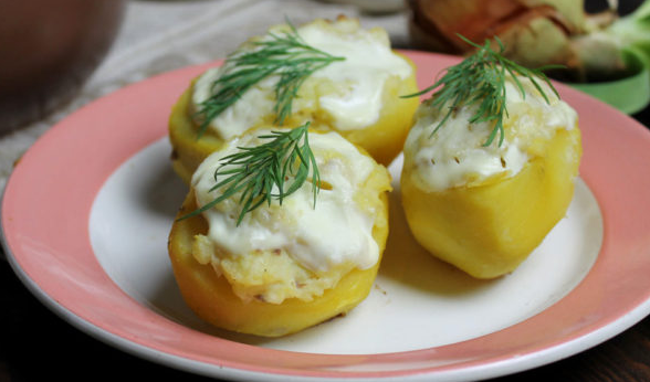 Вкуснейший рецепт фаршированного картофеля.... Ингредиенты: картофель одинакового размера - 10-12 шт. масло сливочное - 2 ст. ложки сметана - 2-3 ст. ложки для фарша: сельдь слабосоленая - 1 шт. лук репчатый - 1 шт. сметана - 1 ст. ложка яйцо - 1 шт. перец по вкусу Картофель отварить в мундире до полуготовности. Очистить, срезать верхушку и вынуть сердцевину. Филе сельди и картофель из сердцевины пропустить через мясорубку или порубить в блендере, непродолжительными и коротким нажатиями на кнопку. Можно просто мелко порезать ножом. В фарш добавить мелко порезанный лук, сырое яйцо, сметану, перец. Полученным фаршем наполнить картофелины. Сверху положить по кусочку масла и полить сметаной. Запекать до готовности в течение 20 минут при температуре 200 градусов. Приятного аппетита!