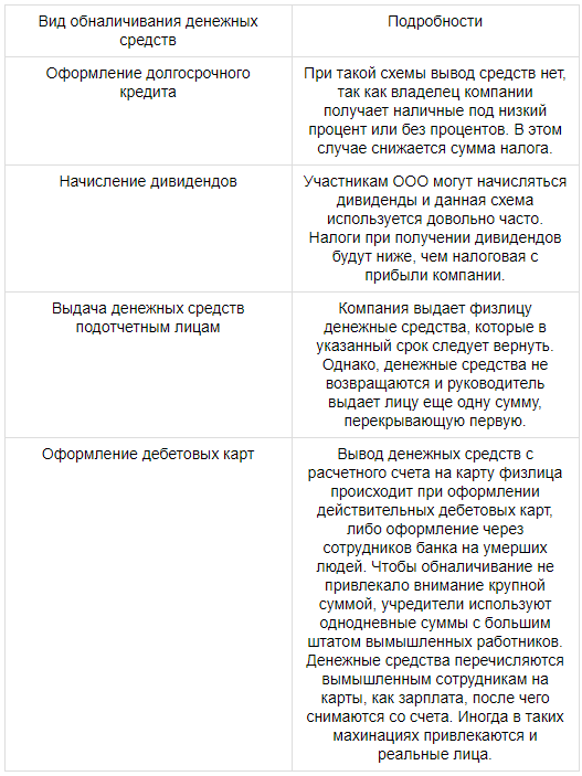 Основные схемы обналички