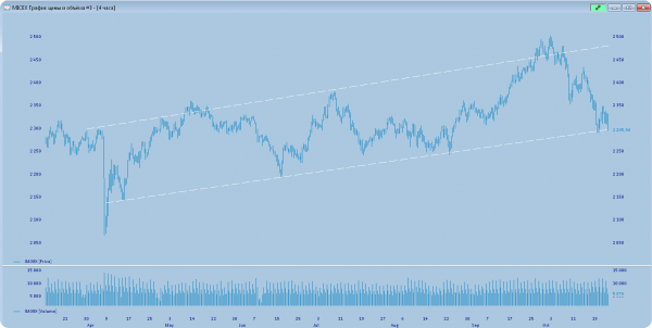 ММВБ сегодня второй раз тестирует нижнюю границу старого восходящего канала.