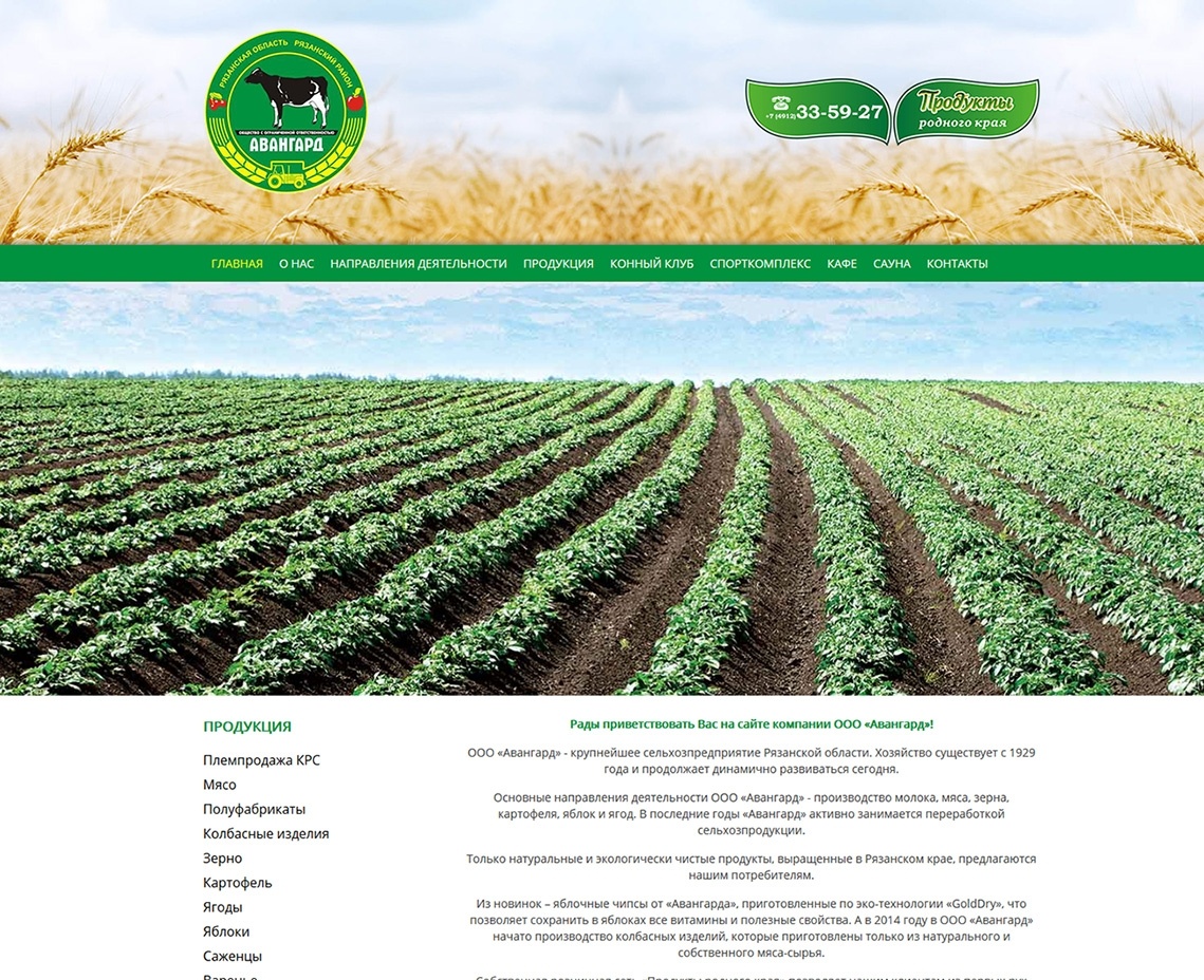 Сайт большого агропромышленного комплекса с очень широким спектром деятельности от производства до переработки. Кроме того, хозяйство активно реализует спортивные и развлекательные проекты. Создание сайтов такого уровня всегда связано с множеством рисков, но специалистам удалось удачно выстроить структуру и связать все в единый организм, обеспечивающий легкий доступ к любому из разделов. Интуитивно понятное меню не заставляет задумываться даже на мгновение при поиске нужной информации. Дизайн сайта оформлен в классических природных тонах, подчеркивающих агропромышленный статус компании.