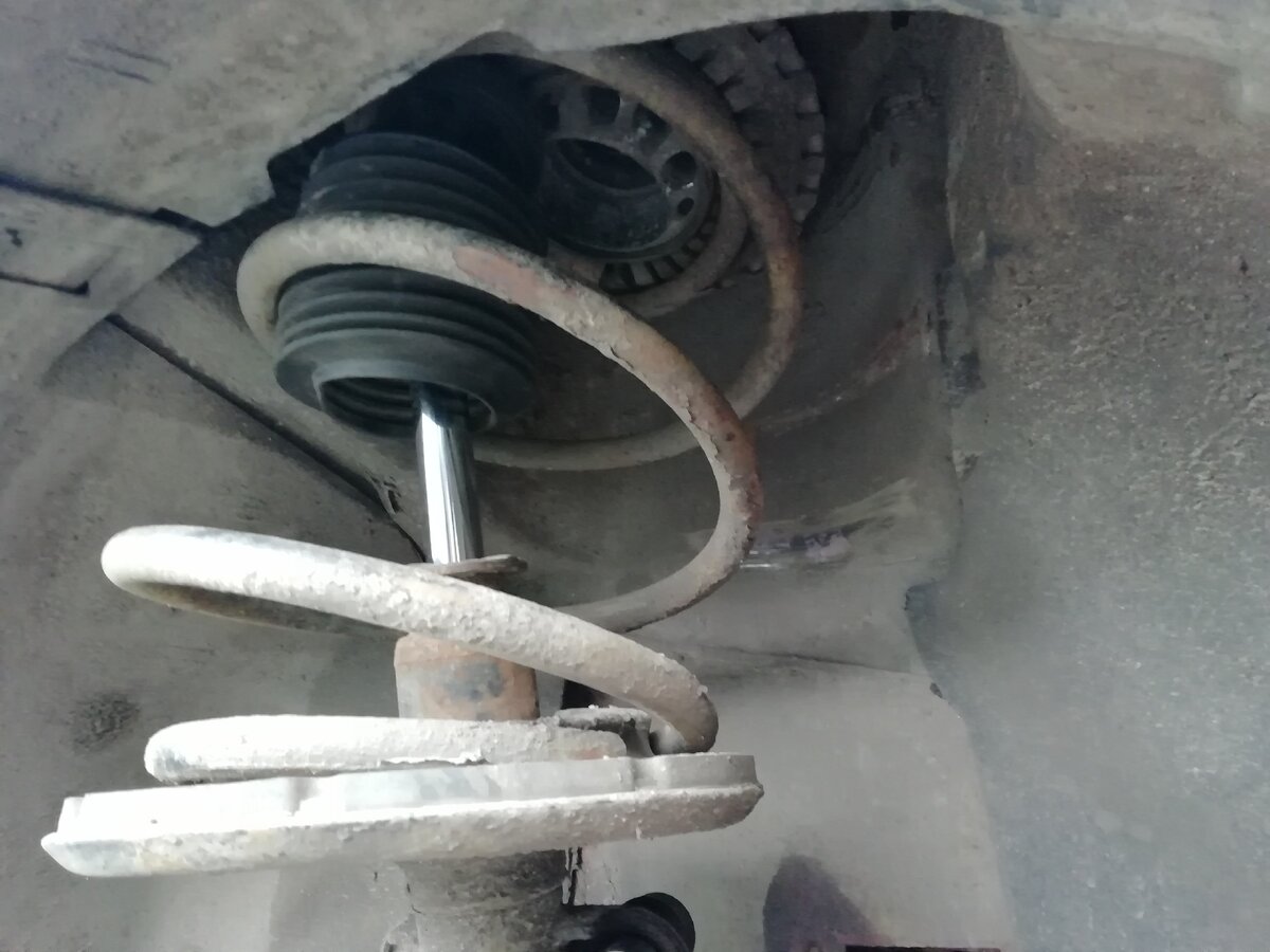 Въезжаю во двор. Наезжаю на лежачего полицейского. Удар где то под капотом, и при дальнейшем движении скрип, стук. Припарковался, смотрю под капотом, под крыльями. Ничего странного не замечаю. Ладно думаю, друже мой будет свободен заеду к нему на работу, глянем. Утром следующего дня поехал в поликлинику. Еду аккуратно. Ничего не стучит и не скрипит. Начинаю парковаться. Заднюю скорость включил и начал выворачивать руль... И тут кааак застучало-заскрипело!!! Я испугался, выскочил из машины, смотрю а у машины переднее левое колесо наклонилось внутрь. Звоню другу. Благо рядом оказался. Приехал посмотрел, говорит "давай потихоньку, к дому рулить". Приехали к дому на парковку, я заглядываю под крыло и вижу такую картину: Начали снимать все это дело. А там вон оно чЁ! Опора уже была установлена с разборки как выяснилось. Оставил карапуза на домкрате. Пошел звонить однокласснику, который работает в магазине деталюшек. Заказал опору и подшипник. По хорошему конечно надо было менять полностью