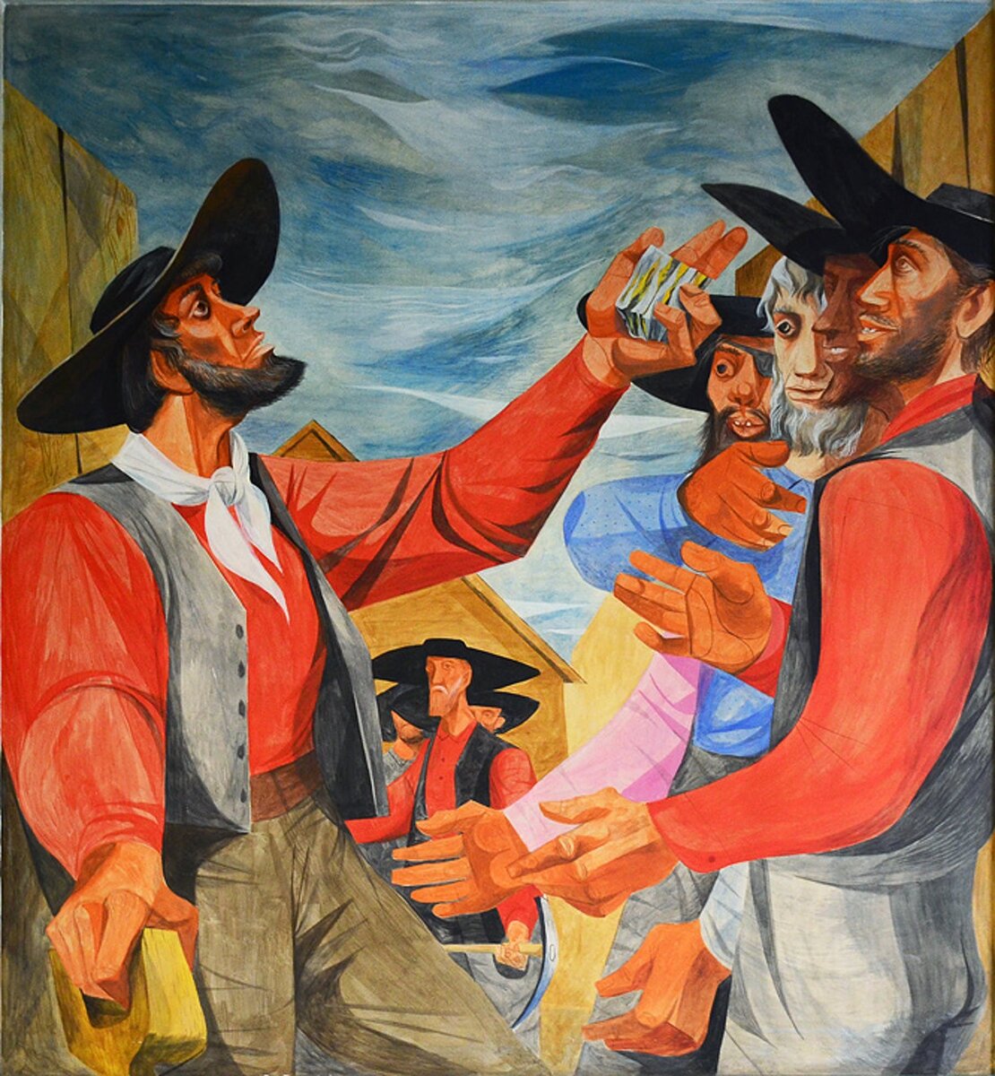 «Возможно, однажды одно ведро белой краски и пара человек в считанные мгновения уничтожат то, над чем я так долго трудился, — писал Антон Рефрежье в 1949 году, размышляя над созданием 27-панельной стенописи в вестибюле Ринкон Аннекс — крупного почтового отделения, расположенного неподалеку от набережной Эмбаркадеро в Сан-Франциско. — А на следующее утро все будет так же, как и три года назад: голые стены, лишенные тех красок и идей, что пугают людей и тревожат их умы».