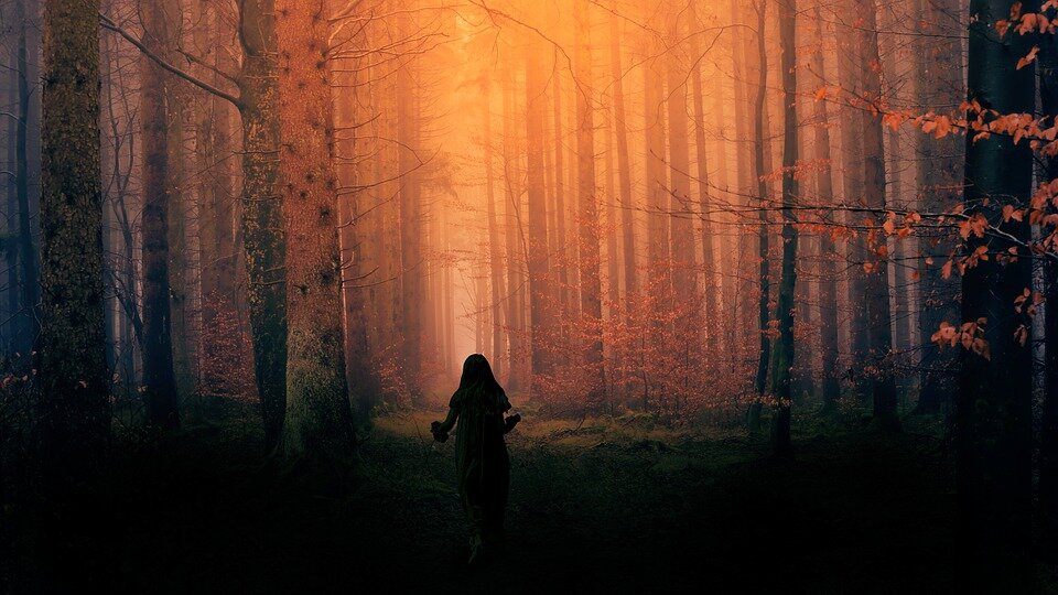 Приближался вечер. Бабушки ещё не было - задерживалась в школе. Катя и Саша оделись потеплее, вышли из дома и потихоньку двинулись в сторону тёмного леса.