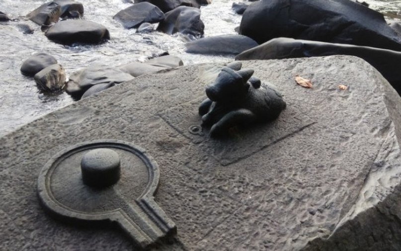 Этот археологический комплекс под названием Сахасралинга (по ссылкам здесь и ниже вы можете прочесть более подробно о каждой достопримечательности) расположен на реке Шалмала в индийском штате Карнатака. Когда наступает лето, и уровень воды в реке понижается, то сюда съезжаются сотни паломников. Из-под воды обнажаются разнообразные загадочные каменные фигурки, высеченные в незапамятные времена. Например, вот это удивительное образование. Вы будете утверждать, что оно сделано вручную?