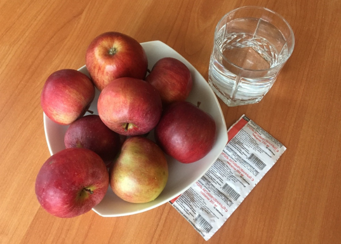 Первый день – очищающий. Его рацион: - 1кг яблок - 10 таблеток активированного угля - 2-2,5 л воды В это время прочищаем желудок и кишечник, выводим токсины и шлаки. Ну и заодно организм как бы подготавливаем к дальнейшим потерям. Яблоки почистила и порезала на дольки, мне так вкуснее. Воду отмерила в кувшин, чтобы не выпить слишком мало. День относительно легкий. По крайней мере, до вечера я даже и не почувствовала, что сижу на диете. Вечером же в голове стали появляться картинки всяких вкусняшек, но я спокойно заедала их яблочками и запивала водой. С самого утра, не удержалась и выпила кружку чая, ну не могу я воду пить натощак.. Так как день очищающий, он всегда самый показательный в плане отвеса. Самый большой минус обычно именно после этого первого дня. Ив этот раз результат меня приятно поразил, столько я не ожидала. Мой вес с утра составил 61,4кг! Это значит, за первый день ушло 1,5 кг, что не может не радовать. Такое начало отлично стимулирует держаться до конца. Завтра отче