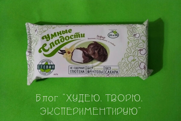 Итак, у меня очередная порция сладостей без сахара для худеющих. Начну со своего фаворита - ванильный зефир от "Умных сладостей". Попробовала буквально вчера и прям в восторге от него. Он, действительно, очень похож на настоящий зефир в шоколаде, но менее приторный. Достаточно плотный и одной штуки хватает, чтобы загасить потребность в сладком. Вместо сахара в зефире стевия + подсластитель изомальт. В упаковке 2 штуки размером с обычный зефир каждая. Цена за упаковку в 60 гр: 60 - 70 р. Калорийность на 100 гр. - 348 ккал Следующий продукт - амарантовые подушечки с шоколадной начинкой. Очень похожи на простые подушечки с начинкой из сухих завтраков, разница лишь в том, что в этих нет сахара и простой муки. Состав достаточно полезный и натуральный. Я ела их на завтрак и очень долго ощущала сытость. Возможно, можно топить их в молоке, как и готовые завтраки, но я не пробовала. Начинки у подушечек бывают разные. В пачке 250 гр, но их много не съешь, поэтому хватает надолго. Це