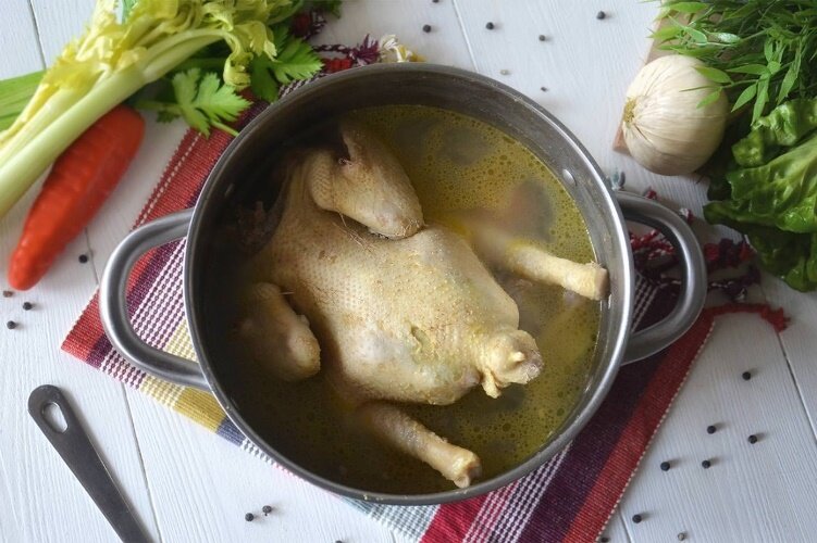 - Если вам нужен насыщенный куриный бульон, закладывайте мясо в холодную воду. Оно отдаст ей свой вкус и аромат. А если вы хотите, чтобы курица получилась сочной и вкусной, кладите её в кипящую воду.