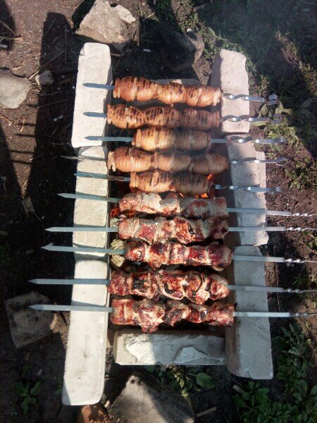 Для приготовления шашлыка нам понадобится: Мясо свинины - 1 кг; Лук - 1 кг; (чем больше, тем лучше) Черный молотый перец (по вкусу); Базилик (сухой); Соль. Способ приготовления: Чистим и режем лук крупно полукольцами. Мясо нарезаем 2-2,5 см толщиной. Меньше нарезать не рекомендуется. Посыпаем кусочки мяса черным перцем и базиликом. На дно кастрюли кладем лук и придавливаем его, что бы появился сок. Затем слой мяса и снова слой перемятого лука. Сверху обязательно должен быть слой лука. Ставим кастрюлю с мясом и луком на сутки. Через сутки шашлык можно жарить на углях. Надеваем мясо на шампур и солим с двух сторон примерно за 5 минут до жарки. Мясо замаринованное таким способом получается вкусное даже на сковородке. Вкусный, сочный шашлык готов! Приятного аппетита и отличных выходных!