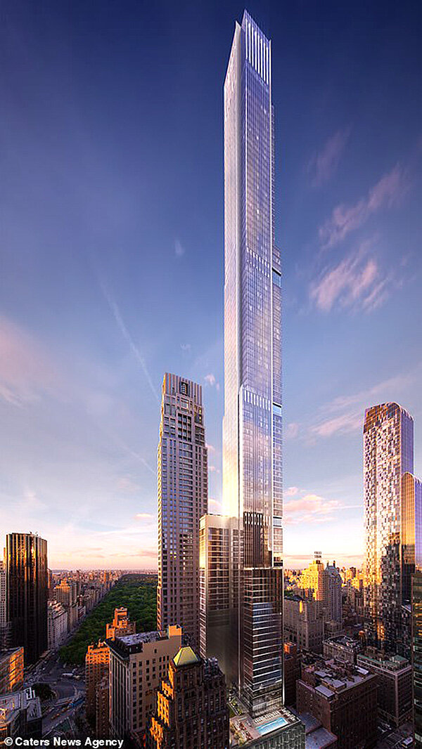 Самая дешёвая студия в новом небоскрёбе линейки Billionaires' Row в Нью-Йорке обойдётся более чем в 1,5 млн долларов. Central Park Tower (Башня Центрального Парка), также известная как Nordstrom Tower (Башня Нордстрема), строительство которой началось в 2014 году, будет готова в следующем году. 101-этажное здание высотой 442 метра станет самым высоким жилым зданием в мире. Изначально высота небоскрёба должна была составить 551 метр, но со временем было решено отказаться от шпиля, что сделало здание на 109 метров ниже. Квартиры поступили в продажу на прошлой неделе. Хотя их стоимость публично не оглашается, стало известно, что пентхаус с четырьмя спальнями площадью 1 626 кв. метров можно было забронировать в прошлом году за 95 млн долларов, но сейчас, учитывая подорожание недвижимости в Нью-Йорке, стоимость может быть ещё более высокой. Почти наверняка будет побит рекорд по стоимости продажи самой дорогой квартиры в Нью-Йорке. Сейчас самой дорогой квартирой считается пентхаус в One57 (д