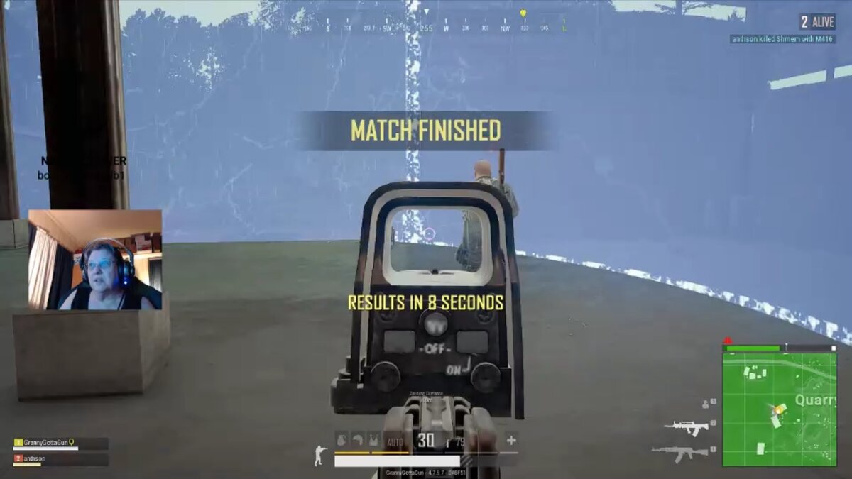 Стримерша Pubg известная под ником GrannyGottaGun, заняла свой первый топ-1 и её радости не было предела, особенно получить "обед с курицей". Свой топ-1 она и её партнер брали на карте Sanhok, оставшись в конце в 3-м, они дожали противника, тем самым одержав победу. На Twich также можно просмотреть этот момент с победой: