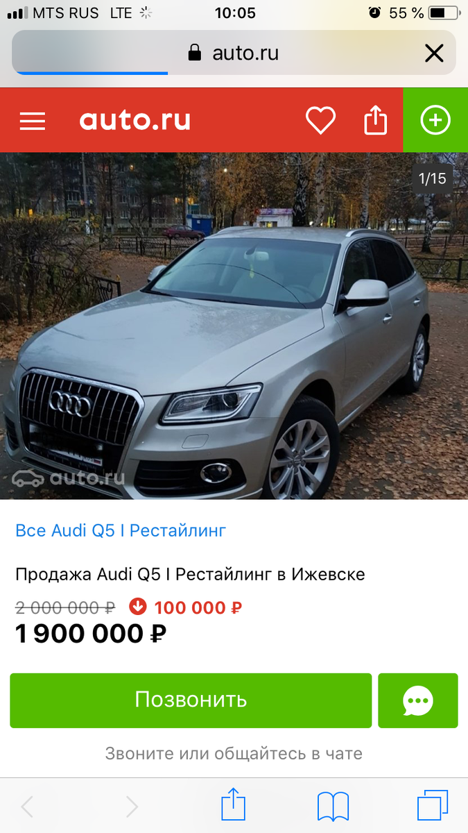 Всем привет. На этот раз у нас на осмотре побывал Audi Q5 с двигателем 2.0 TFSI (225 л.с.). Коробка - обычный 6-ступенчатый автомат. Сама машина 2015 года с заявленным пробегом 35 тыс км. Ниже скрины объявления о продаже этой машины: