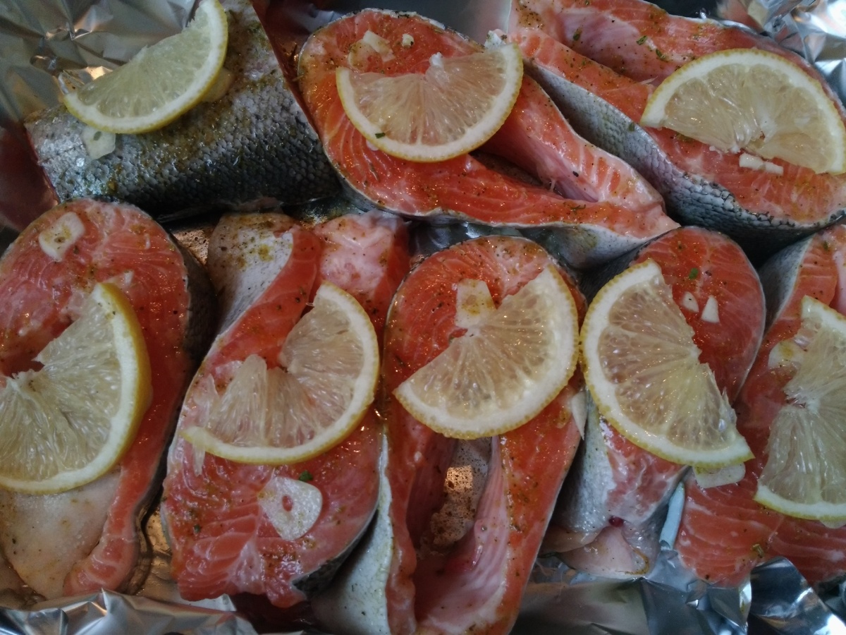Добрый день! Вы еще не готовили рыбу в духовке - тогда давайте научимся это делать! Для сегодняшнего рецепта я купил речную форель потрошеную. Это одна из недорогих, но очень вкусных рыбок. Итак приступим: Что нам необходимо: Начинаем готовить: 1. Очищаем форель от чешуи ножом 2. Отрезаем голову и плавники 3. Промываем под проточной холодной водой 4. Нарезаем кусочками в 4-6 см шириной 5. Посыпаем приправами (я беру в магазине упаковку приправы для рыбы) 6. Берем противень или другую жаропрочную посуду для выпекания, отрываем от мотка фольги кусок в двое длиннее посуды, которую используете (чтобы потом завернуть рыбу). 7. Выкладываем кусочки рыбы на фольгу, посыпаем приправой с двух сторон, кладем на каждый кусочек рыбы половинку лимона и немного чеснока. 8. Заворачиваем рыбу в фольгу, но не очень плотно. 9. Ставим рыбу в духовку, разогретую до 180-200 С на 30 минут. Вот весь процесс! Приятного аппетита!