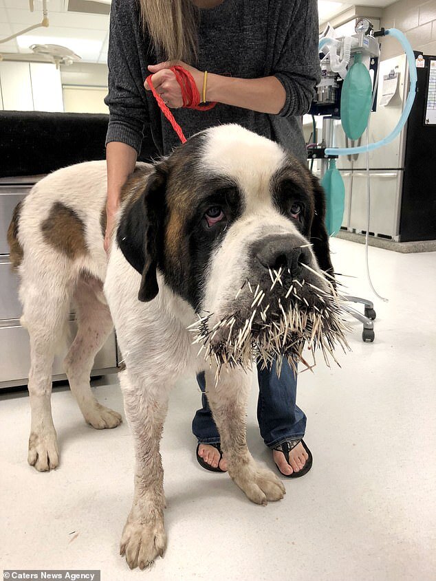 С морды любопытного сенбернара удалили множество игл дикобраза