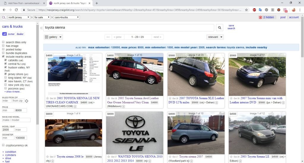 В общем начал я с фейсбука и крэйглиста. Объявления заманчиво манили малыми пробегами, красивыми картинками и невероятно доступными ценами. Согласно им Тойоту или Хонду можно было купить за какие-то смешные 5000-6000 долларов. По факту оказалось, что 80% объявлений размещают перекупщики, которые покупают машины с рук или на аукционах, чистят салоны, скручивают пробеги и выдают их за самые лучшие автомобили в мире, которыми они, к сожалению, не являются. Я сразу вычеркнул все предложения из Нью-Йорка и особенно из южной части Бруклина. Именно там самые низкие цены на всем рынке. Правда, зная наших сограждан я ни за что не поверю в их альтруистические наклонности, а низкую цену скорее спишу на подводные камни, поиском которых мне совершенно не хочется заниматься. В фейсбуке искать гораздо удобнее в этом плане. Можно посмотреть другие объявления продавца и сразу понять что он перекупщик. Некоторые пытаются прикидываться американцами, но стоит зайти в ленту, увидеть посты на русском или грузинском и все сразу становится понятно.