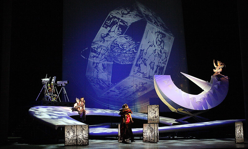 Карталов и Панайотов сознательно уходят от унылой европейской практики последних десятилетий, когда Вагнера спускают в буквальном смысле слова с котурн — вместо небожителей в латах и шлемах зритель видит современную бытовую или производственную картину. Эта штамповка изрядно наскучила, но репродуцируется тем не менее на европейских сценах с вызывающим аллергию постоянством: кожаные пальто и офисные двойки-тройки, персональные компьютеры и стиральные машины, автомобили и небоскребы из стекла и бетона. Болгарская постановка — это мир фэнтези, высокой игры, сложной и занимательной, мир фантастических картин, нездешних цивилизаций, существующий неведомо где, неведомо когда и неведомо как. Очевидный космический антураж сценографии исключительно адекватен образному миру и идейным посылам вагнеровской мегалегенды: миф, сага, фантастический эпос, изложенный композитором, здесь не «заземляется», не обытовляется, а напротив, мультиплицируется и гипертрофируется, доходя до уровня высокого синтеза слышимого и видимого.