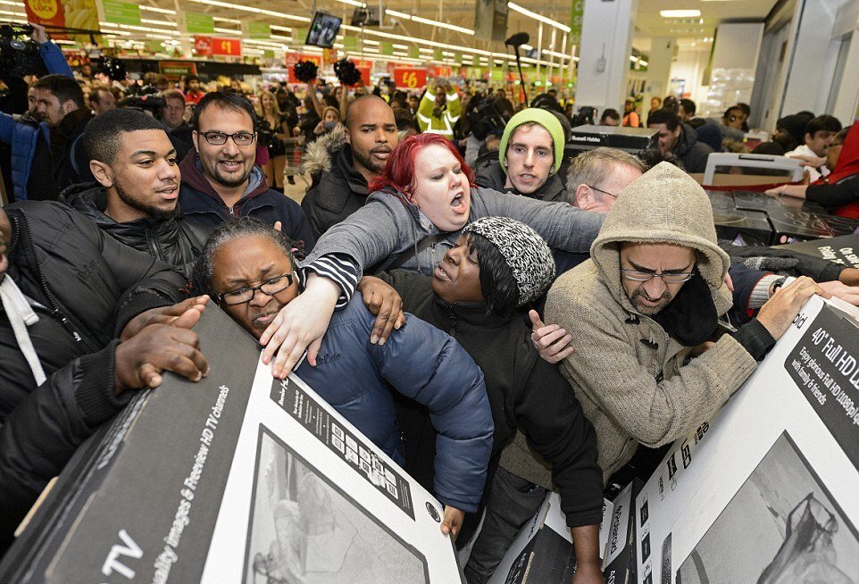 Когда-то в 1980-х годах ритейлеры приняли концепцию "Черной пятницы" и развернули ее, чтобы привлечь больше людей в свои магазины для однодневных продаж. И даже двери открылись намного раньше: в четверг вечером. Покупатели толпились, жадно протаскивая свою тушу как можно ближе к началу очереди, чтобы быть первыми внутри.