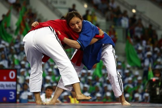 В Казани завершился XVI чемпионат мира по борьбе на поясах среди мужчин и женщин. В турнире приняли участие около 200 спортсменов из 38 стран мира. В составе туркменской сборной выступили 14 борцов. Об этом 28 октября корреспонденту SNG.Today сообщили в министерстве спорта и молодёжной политики Туркменистана. Туркменские спортсмены завоевали 14 медалей ― четыре золотых, шесть серебряных и четыре бронзовых. Среди мужчин обладателями золотых наград стали Пальван Гурбангельдыев в весовой категории до 75 кг и Арслан Ыбрайымгулыев в весе свыше 100 кг. Среди женщин чемпионского титула удостоились Зухра Мадраимова (58 кг) и Лачин Бадаглыева (до 52 кг). Серебряными призёрами стали Исгендер Аширов (до 62 кг), Бегенч Ягмыров и Медет Халлыгурбанов (68 кг), Гылыч Джумаев (до 90 кг), Сейди Батыров (до 100 кг). Среди женщин на вторую строчку пьедестала почёта поднялась Динара Халлыева (до 66 кг). Бронзовая награда на счету Сылапберди Нурыева (до 82 кг), Ильяса Рахманова (до 57 кг), Бегенча Какалые