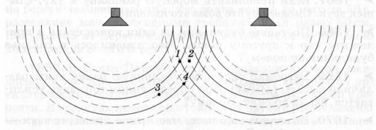 Распространение звуковой волны из динамика акустической системы обычно представляют в виде сферических волн, исходящих из центра диффузора, что соответствует точечному и сферическому излучателям. Углубимся в процесс подробнее - импульс и направление излучения акустического излучателя с диффузором вогнутой или плоской формы преимущественно направлен вперёд, вдоль оси движения диффузора. При этом если его диаметр меньше длины волны, то звуковая волна на этих частотах почти всенаправленная, фронт быстро становится сферическим, как от точечного излучателя; если диаметр равен или больше длины волны — возникает направленное излучение, фронт вытягивается вдоль оси, боковое излучение уменьшается. Частота, соответствующая диаметру 6-дюймового динамика равна 2250 Гц, а для 10-дюймового - 1350 Гц. Та часть частотного диапазона, имеющая сферическую форму создаёт ранние отражения (см. схему). Ранние отражения (первые отражения) в акустике — это отражения основного звука от стен, пола и потолка по