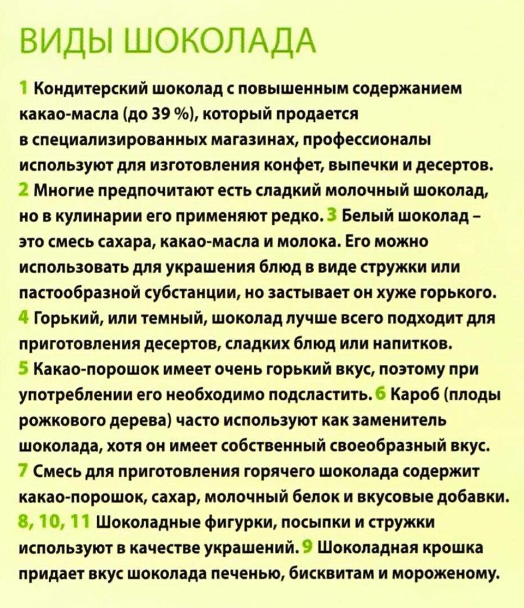 Виды шоколада! Не покупайте шоколадную глазурь для кондитерских изделий, вместо какао- масло в глазурь добавляют растительное.Такая глазурь хорошо застывает и режется, но получается более калорийной и менее глянцевой. Шоколадный флан с лесными ягодами! Изумительный вкус! 8 порций по 421 килокалории, 25,1 г. жиров. Тарталетки с имбирем и горьким шоколадом! Пряное лакомство! 8 порций по 507 килокалорий, 34,4 г. жиров. Приветствую вас дорогие друзья! Желаю вам успехов во всех ваших начинаниях) Поддержите пожалуйста подпиской на канал и не забудьте оценить старания автора! В октябре мы начинаем наше с вами путешествие в мир самого вкусного и сочного! Всем приятного просмотра!