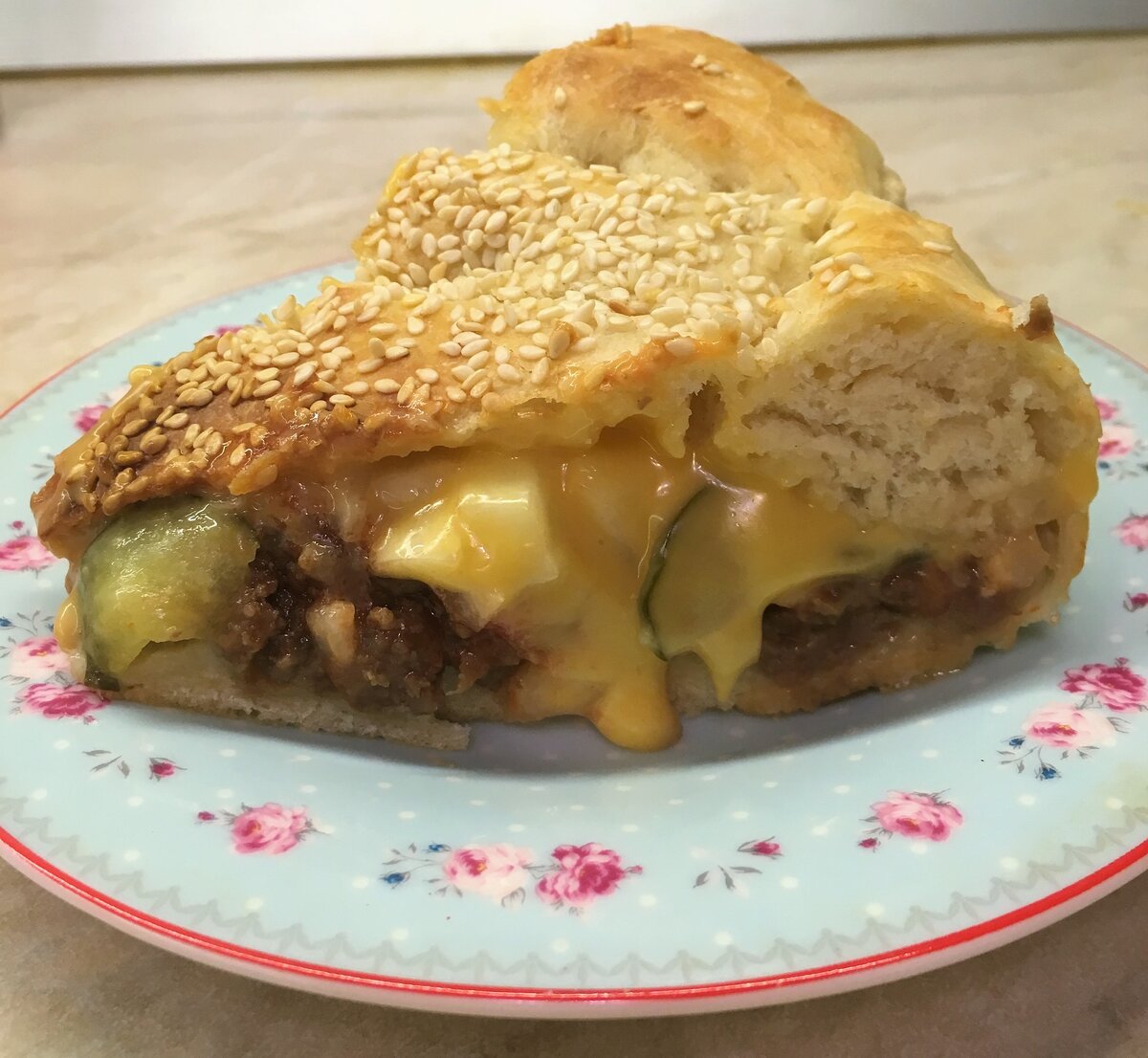Очень вкусный пирог, который заменит фас-фуд, придется по вкусу каждому! Ингредиенты: Для теста: Мука - 500 гр. Яйцо - 1 шт. Соль - 2 ч.л. Сахар - 1 ч.л. Растительное масло - 4 ст.л. Дрожжи (сухие) - 6 гр. Вода теплая - 250 мл. Кунжут - для обсыпки - 30 гр. Для начинки: Фарш говяжий - 500 гр. Лук репчатый - 1 шт. Сыр "Чизбургер" или твердый сыр - 100 гр. Соус томатный или кетчуп - 100-150 гр. Соленые/маринованные огурцы - 1 - 2 шт. Способ приготовления: Приятного аппетита! Если Вам понравился рецепт, ставьте лайк и подписывайтесь, Вам этого ни чего не стоит, а мне приятно, тем самым вдохновляете меня на новые рецепты!