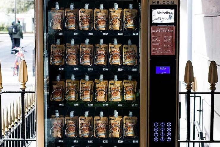 Учредители виски-бар «Black Rock» установили в Лондоне вендинг автомат по продаже разлитого в мягкую упаковку элитного виски. Томас Аске и Тристан Стивенсон в прошлом году запустили подписку Whisky-Me, которая позволяет поклонникам этого крепкого алкогольного напитка, покупать пакеты объемом 50мл с редкими и эксклюзивными виски. Торговый автомат был установлен перед отелем «Napoleon», недалеко от станции метро Ливерпуль-стрит. Купить элитный алкоголь в автомате можно будет, начиная с 1 ноября и до конца декабря текущего года. В автомате можно приобрести алкоголь марок Macallan, Royal Lochnagar и Aberfeldy. Стоимость одной упаковки объемом 50мл составляет £7,95.