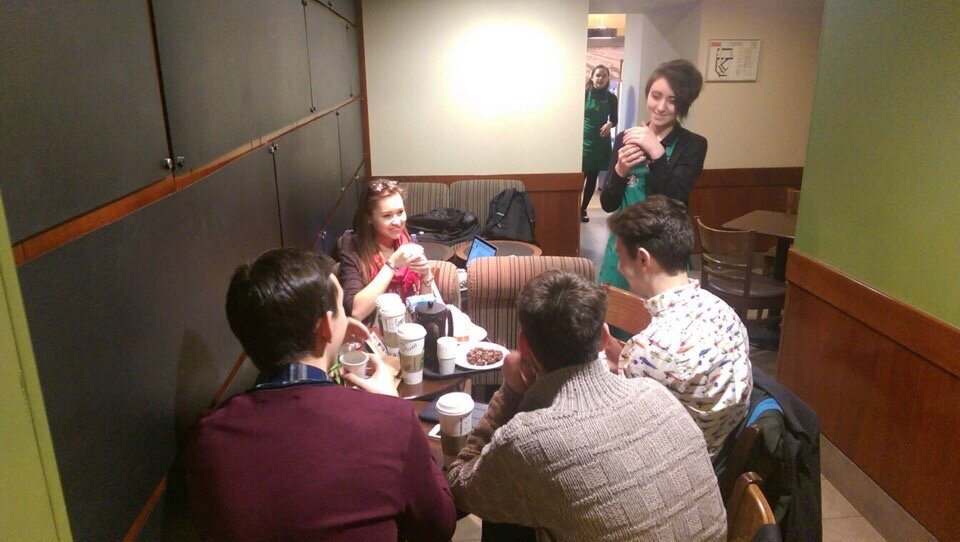 Моя самая любимая часть внутренней культуры - это кофе-тейстинги. В Старбаксе представлено около 10 сортов зерён с разной историей, происхождением, ароматом, вкусом и так далее. Раз в смену пАртнеры могут заварить себе френч-пресс с любыми из зерён, пачка которых списывается на отдельную статью. Я искренне очень любила эти моменты, когда ты мелешь кофе, насыпаешь во френч-пресс, заливаешь кипятком, накрываешь и ставишь таймер на 4 минуты. Затем опускаешь пресс, оставляя только невероятно ароматный кофе, разливаешь его по маленьким стаканчикам, которые кто-нибудь из смены уже подписал нашими именами. Начинаются этапы кофе-тейстинга: прикрыть стаканчик рукой и глубоко вдохнуть аромат, описать свои ощущения, прихлебнуть три раза с громким звуком (самое весёлое), потом сделать полный глоток, снова поделиться впечатлениями. Правда, это лучше любого тимбилдинга и мероприятия, такой интимный процесс между людьми, которые вынуждены работать вместе.