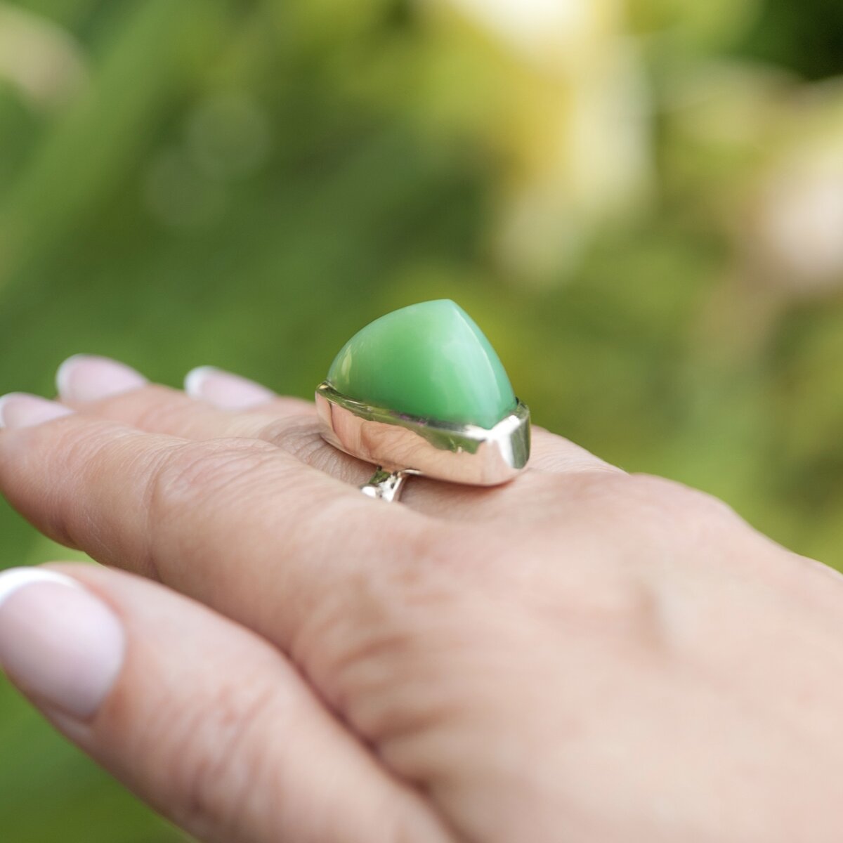 Лето начинается сегодня! С ним будет хорошо. И тем, кто любит похандрить, и тем, кто любит жизнь. Кольцо для отличного настроения. Камень - хризопраз. Его яркий цвет молодой зелени напомнит о теплых днях и впишется в осенне-зимний гардероб. Форма камня - симбиоз случайности и художественного замысла. Оригинально и гармонично. Повторы невозможны. Качество - наше, добротное. Прочная, согнутая вручную шинка. Надежный каст. Фирменная печать-подставка, на которой кольцо можно красиво хранить или оставить на полочке в ванной и не боятся навредить камню. А на печати изображен один из магических символов-пожеланий. Черт возьми, оно идеальное! :) Кольцо «Лето внутри». Хризопраз. Размер 18,5-19. 17 000 руб.