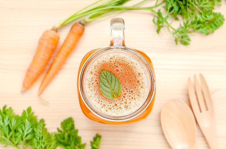 Если вместо конфеты, пирожного или чипсов на перекус выпить стакан морковного сока, вы получите длительное чувство насыщения без вредных калорий.