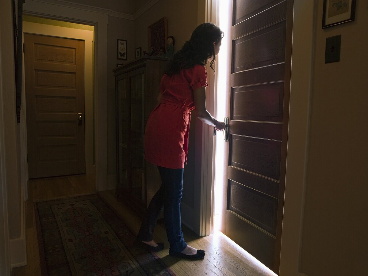 Увидела как кто-то открыл дверь, но там ни кого не было.