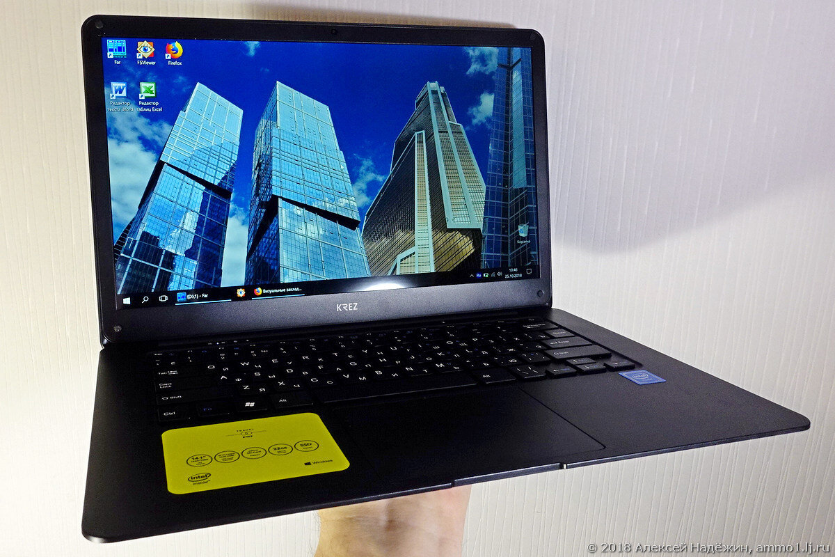 Я поставил над собой эксперимент: почти наугад купил дешёвый ноутбук неизвестного производителя с весьма заманчивыми характеристиками: матовый IPS экран 14.1" FullHD, вес 1.26 кг, 4ГБ памяти, 32 ГБ SSD с возможностью установки второго SSD/HDD, двухъядерный процессор Intel Celeron N3350, 3 порта USB 3.0/2.0, до 8 часов работы от аккумулятора.