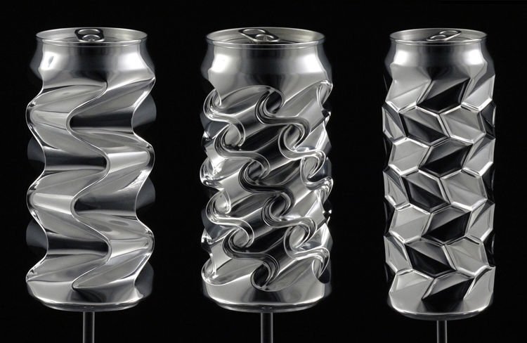 Сложные алюминиевые скульптуры художника Ной Деледда выглядят как работа точных автоматизированных машин, но в отличии от машины художник делает их все вручную, используя только свои пальцы, чтобы создать вмятины и складки в мягком металле. Глядя на идеальные геометрические узоры высеченных этих блестящих алюминиевых банок, вы бы вероятно подумали, что Ной Деледда на самом деле робот. Только посмотрите на них, нет никакого способа, которым мог быть настолько точным, не говоря уже про то, что это сделано лишь своими пальцами. Вот почему талантливый художник должен был показать видео доказательства своего творческого процесса, и доказать, что он не просто использует какой то пресс для формирования переработанных алюминиевых банок. Невероятно талантливый художник начинает с шлифовки напечатанного слоя, а затем переходит к его полировки, пока банка не становится красивой и блестящей. Затем наступает очень трудная часть - используя только лишь свои пальцы, Ной создает складки и вмятины