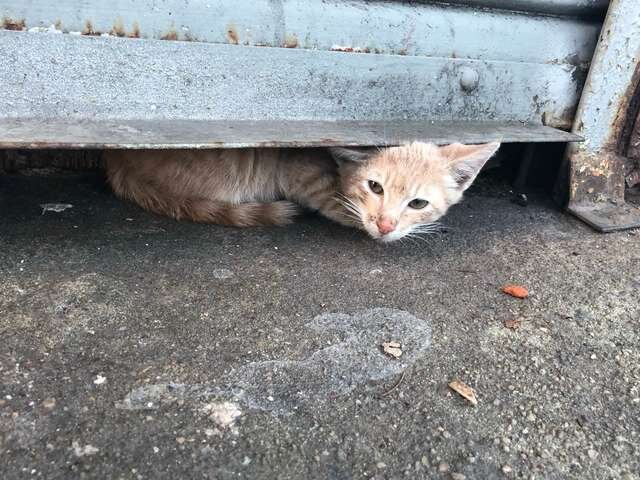Жительница Нью-Йорка Элисия Кэрис в середине октября шла как обычно с работы домой, когда вдруг услышала тоненькое мяуканье. Звук издавался словно из ниоткуда и женщина не сразу поняла, что он идет из узкой щели под тяжелыми металлическими воротами. Присмотревшись, она заметила в щели тонкую светло-рыжую кошачью лапку, которая тут же пропала. Когда Элисия присела на корточки и сильно наклонилась, она увидела глубоко внутри в щели маленького грязного и худого кота. Так как кот категорически не хотел выходить на "кис-кис" и другие уговоры, Элисия решила выманить его с помощью баночки еды. Она зашла в ближайший магазин и купила там кошачий корм. Там же она спросила у людей, знают ли они что-то про этого кота. Ей рассказали, что кот сидит в этой щели уже как минимум несколько недель и лишь чуть-чуть выглядывает из нее, но не вылезает полностью, так как очень сильно боится людей и при малейшем шуме скрывается глубоко внутри. Соседи пытались его кормить, но он ел корм лишь когда все