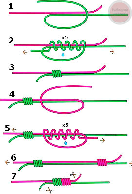 Если у Вас во время рыбалки порвалась леска, и сложилось так, что ее количество ограничено, то данная статья - то, что Вам нужно. Здесь описываются четыре способа связать порвавшуюся леску, которые помогут Вам найти выход из трудной ситуации. Виды узлов для лески Двойной скользящий узел Он является представителем скользящих и самозатягивающихся узлов. Это говорит о том, что такой узел не развяжется, однако порваться он все-таки может. Инструкция: 1. Разместить два конца лески параллельно в направлении друг к другу. 2. Сделать петли из нижнего элемента. 3. Продеть конец верхней лески в петлю. 4. Сложить вместе верхнюю и нижнюю части лески. 5. Конец нижнего элемента опустить вниз и провести через получившуюся петлю. 6. Конец верхнего элемента опустить вниз и провести через получившуюся петлю. 7. Натянуть концы лесок, затянув и совместив таким образом два узла. Змеиный узел Обычно этот узел применяется при связывании двух материалов одинакового диаметра. Пользуется большой популярностью