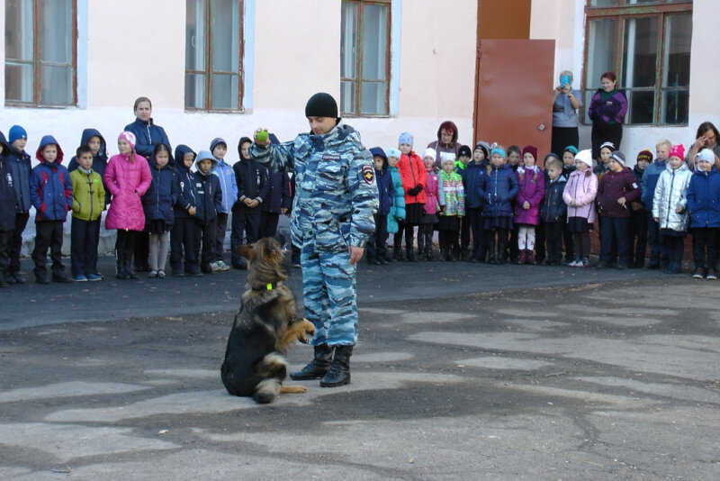 Полицейские кинологи побывали в гостях у ребят из средней школы №8 города Биробиджана