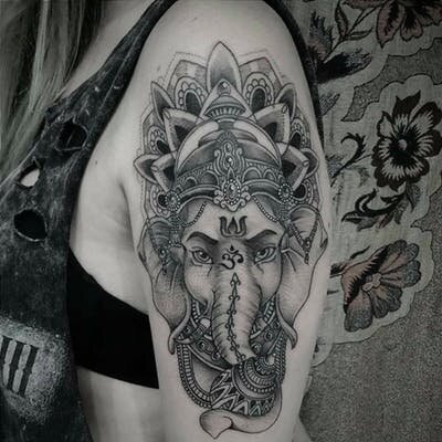 Тату Ганеша может украсить тело как парня, так и девушки. Гане́ша - один из самых известных и почитаемых богов в индуизме. Чаще всего тату Ганеша наносят люди желающие привлечь в свою жизнь успех. Для людей, мало знакомых с культурой Индии и индуизмом, - это просто экзотичная и необычная идея для украшения. Тату с изображением Ганеши можно набить на грудь, плечи или спину.
