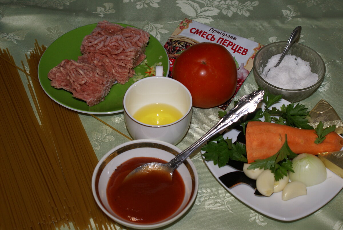Томатный соус прекрасно сочетается с этим гарниром. А если немного усложнить состав соуса, он приобретет удивительный вкус. Пассированные овощи отдадут соусу весь свой вкус и аромат. Чеснок добавит немного остроты, а обжаренный фарш сделает соус сытным.