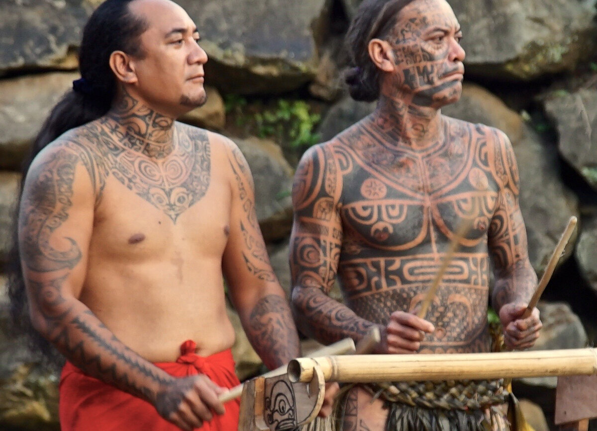 Мужчинам делали первые татуировки на специальной церемонии в подростковом возрасте, и в ходе жизни все тело постепенно покрывалось рисунками и узорами. Женщинам разрешалось носить их только за ушами, на руках и ногах.