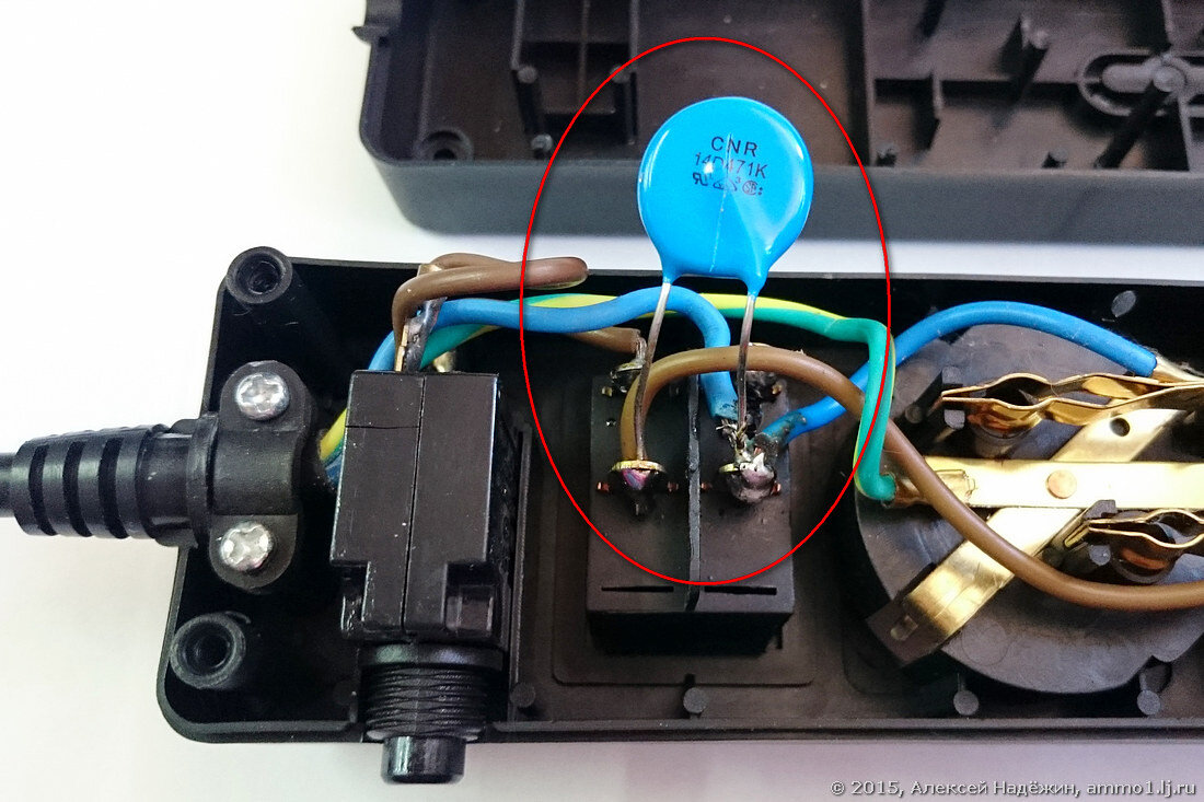 Электронный компонент у сетевого фильтра обычно один - это варистор (обычно на 470 вольт).