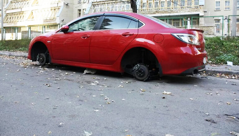 Для того, чтобы ночью с припаркованной машины не сняли колёса, многие водители ставят "секретки"- секретные болты, то есть вместо одного стандартного болта, ставят болт с нестандартной головкой. У кого колёса прикручиваются на гайки, вместо гайки со стандартными гранями, прикручивают гайку с нестандартными гранями. "Секретный" болт откручивается только при помощи специального, уникального ключа или головки, которые должны защитить от кражи колёс. Существует мнение, что если автоворы присмотрели колёса вашего автомобиля, то они всё равно снимут. Ради красивых дисков с дорогой резиной некоторые готовы даже угнать автомобиль, а потом сняв колёса, его бросить. Автовором может оказаться любой человек, даже сосед по лестничной клетке. Но обычно банда состоит из нескольких человек, у которых есть пара домкратов, силовые отвёртки и необходимые ключи. Если ставите "секретки" на колёса, то лучше всего их покупать в автомагазинах, расположенных не рядом с домом, а подальше. Лучше всего будет,