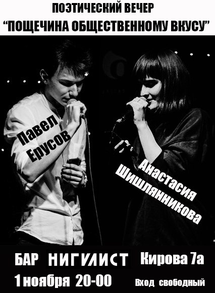1 ноября, 20:00, бар «Нигилист», ул. Кирова, 7а.