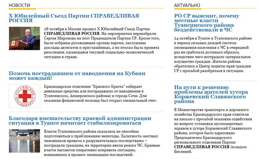 Затем зашёл на сайт регионального отделения СР. А там наезд на туапсинских чиновников и хвала губернатору. Почти как в "Версии". Но те переплюнули даже содержащиеся за счёт бюджета краевые СМИ.